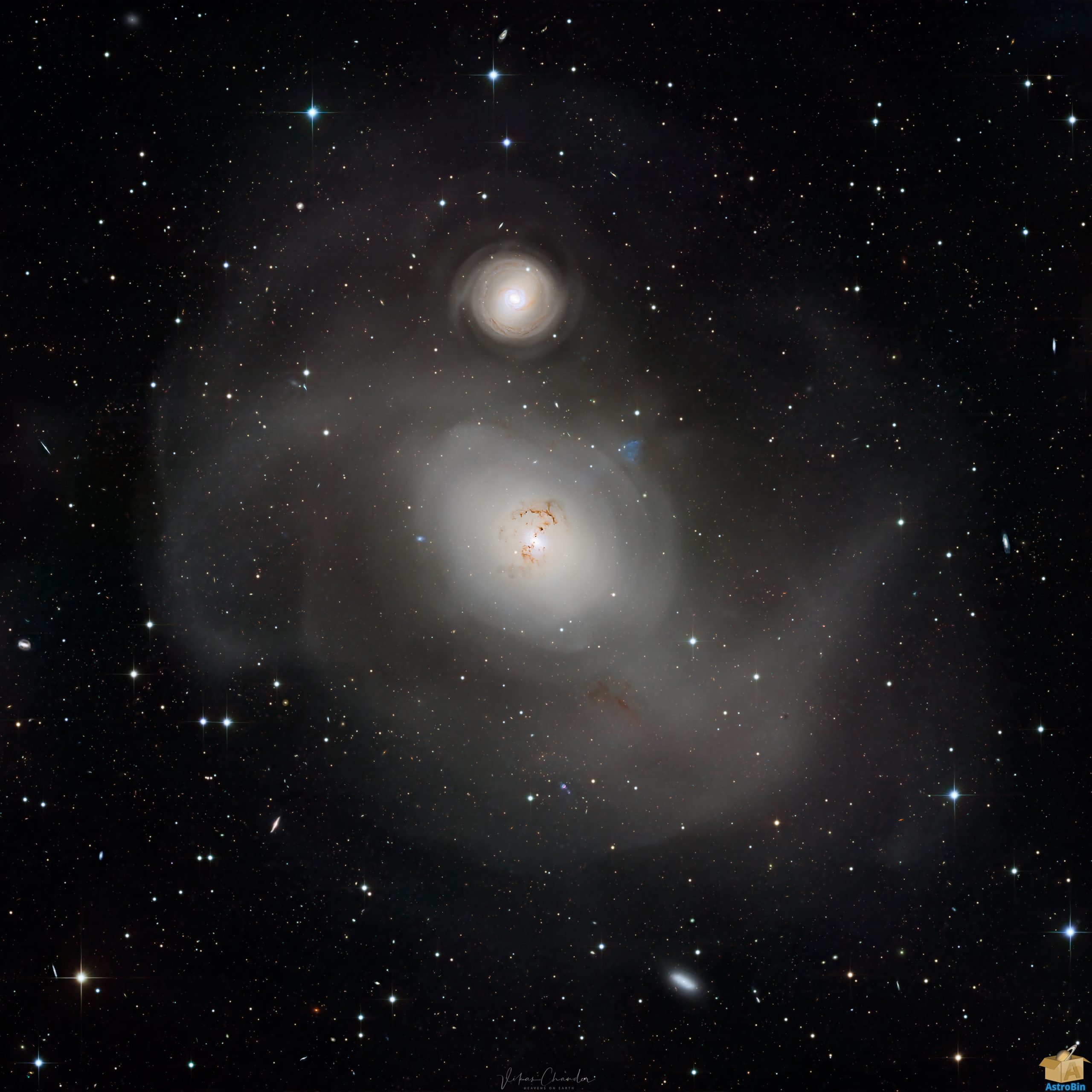 Fornax A and Fornax B are two distinct galaxies within the Fornax Cluster, a group of galaxies about 62 million light-years from Earth. While they appear close together in the sky, uncertainties in their distances mean they are not gravitationally interacting. Fornax A, or NGC 1316 is a massive lenticular galaxy, a type that is halfway between a spiral and an elliptical. Fornax B, or NGC 1317 on the other hand is a much smaller intermediate spiral galaxy…